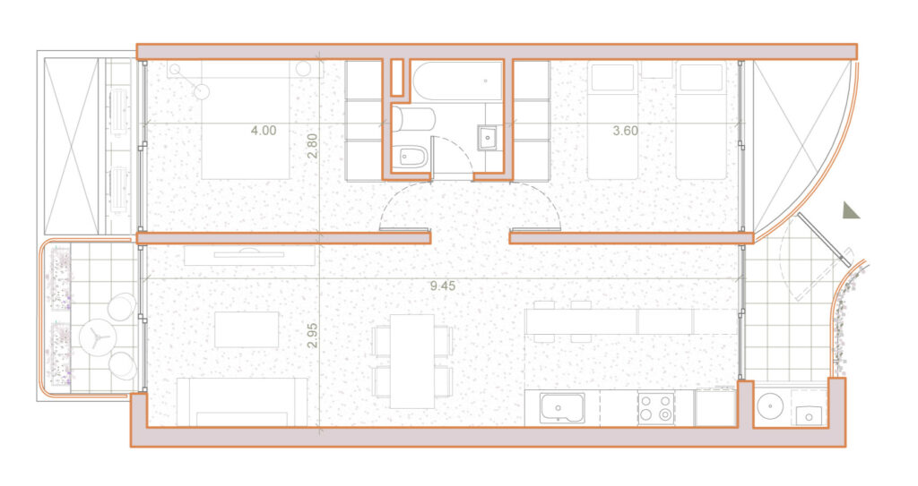 DEPARTAMENTO 2 DORMITORIOS «A» – 1º, 2º y 3º PISO