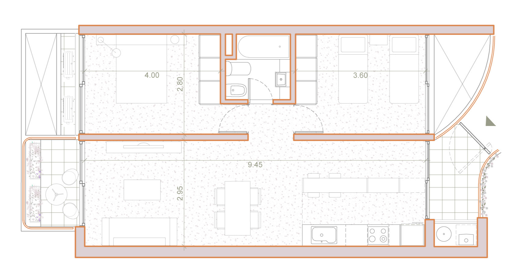 • Doble balcón de uso exclusivo: uno principal orientado al Norte y otro de servicio con lavadero